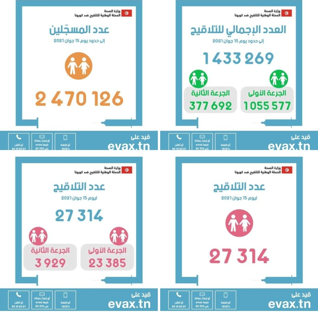 ⏺ عدد التلاقيح ليوم الثلاثاء 15 جوان 2021 : 27314
